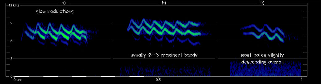 b) Common Blackbird Turdus merula Besh Barmag, Siyazan, Azerbaijan, 03:07, 3 April 2019 (BB). Three flight calls of a nocturnal migrant. First call shown. Background: Long-eared Owl Asio otus and Song Thrush T philomelos. 190403.MR.030728.01