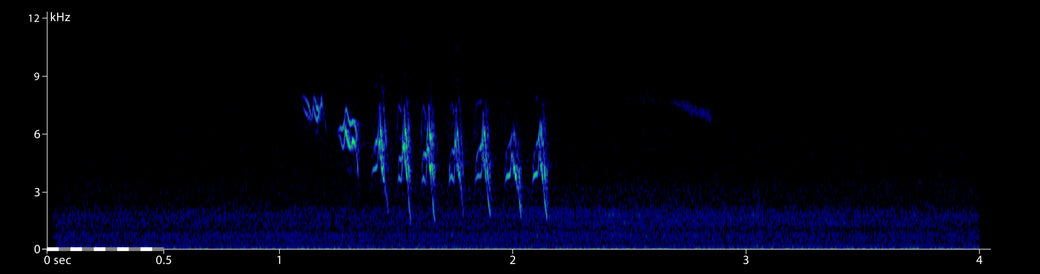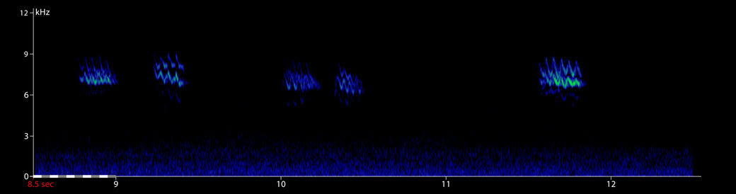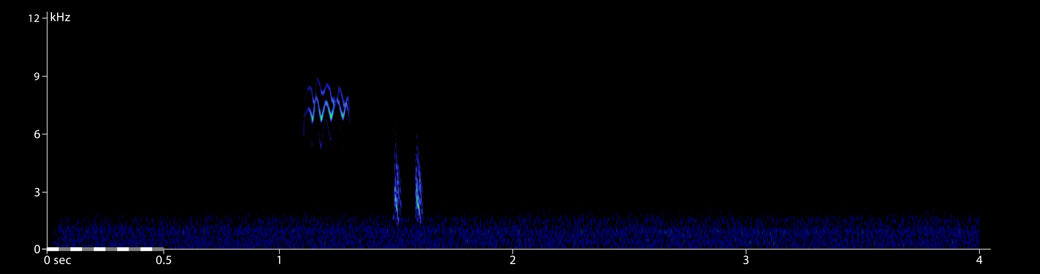 i) Common Blackbird Turdus merula Poole, Dorset, England, 01:04, 30 October 2016 (Paul Morton). Four flight calls of a nocturnal migrant. Second call shown. Background: Song Thrush T philomelos. 161030.PM.010400.12