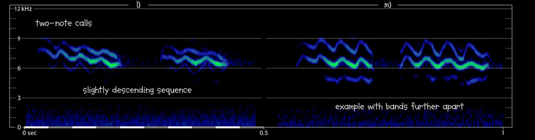 j) Common Blackbird Turdus merula Poole, Dorset, England, 00:57, 30 October 2016 (Paul Morton). Double flight call of a nocturnal migrant, with another individual further away. Background: Song Thrush T philomelos and Redwing T iliacus. 161030.PM.005700.12
