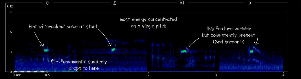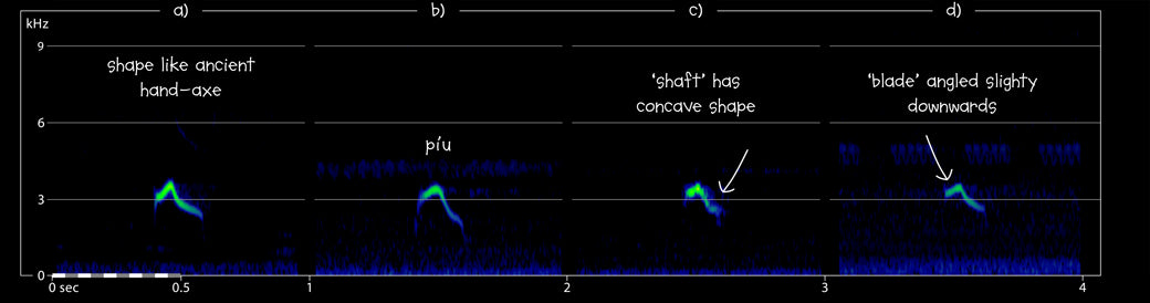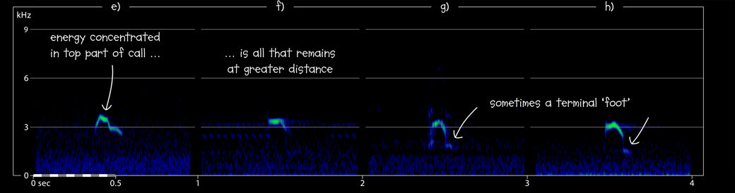 Hanko, Uusimaa, Finland, 00:10, 6 May 2050 (Dick Forsman). Four flight calls of a presumed nocturnal migrant, with a faint response from locals in the form of song. For a zoomed-in sonagram see h) below. Background: Common Chaffinch Fringilla coelebs. 200506.DF.001024.22