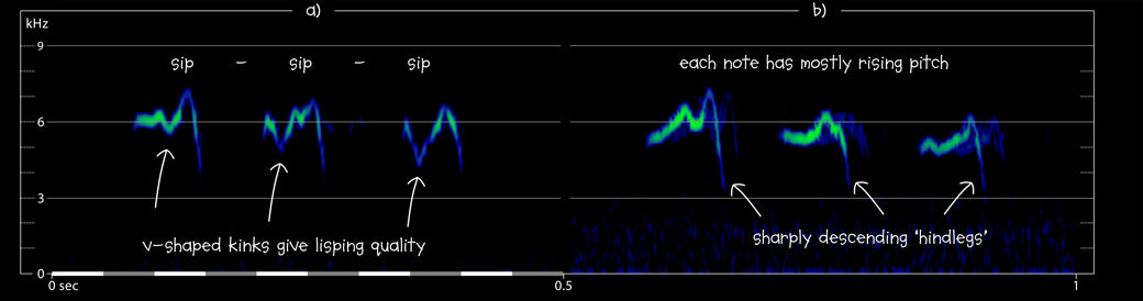 b) Meadow Pipit Anthus pratensis Sumburgh Head, Shetland, Scotland, 05:30, 18 October 2017. Three-note and single-note flight calls of more than one nocturnal migrant. 171018.MR.053030.02