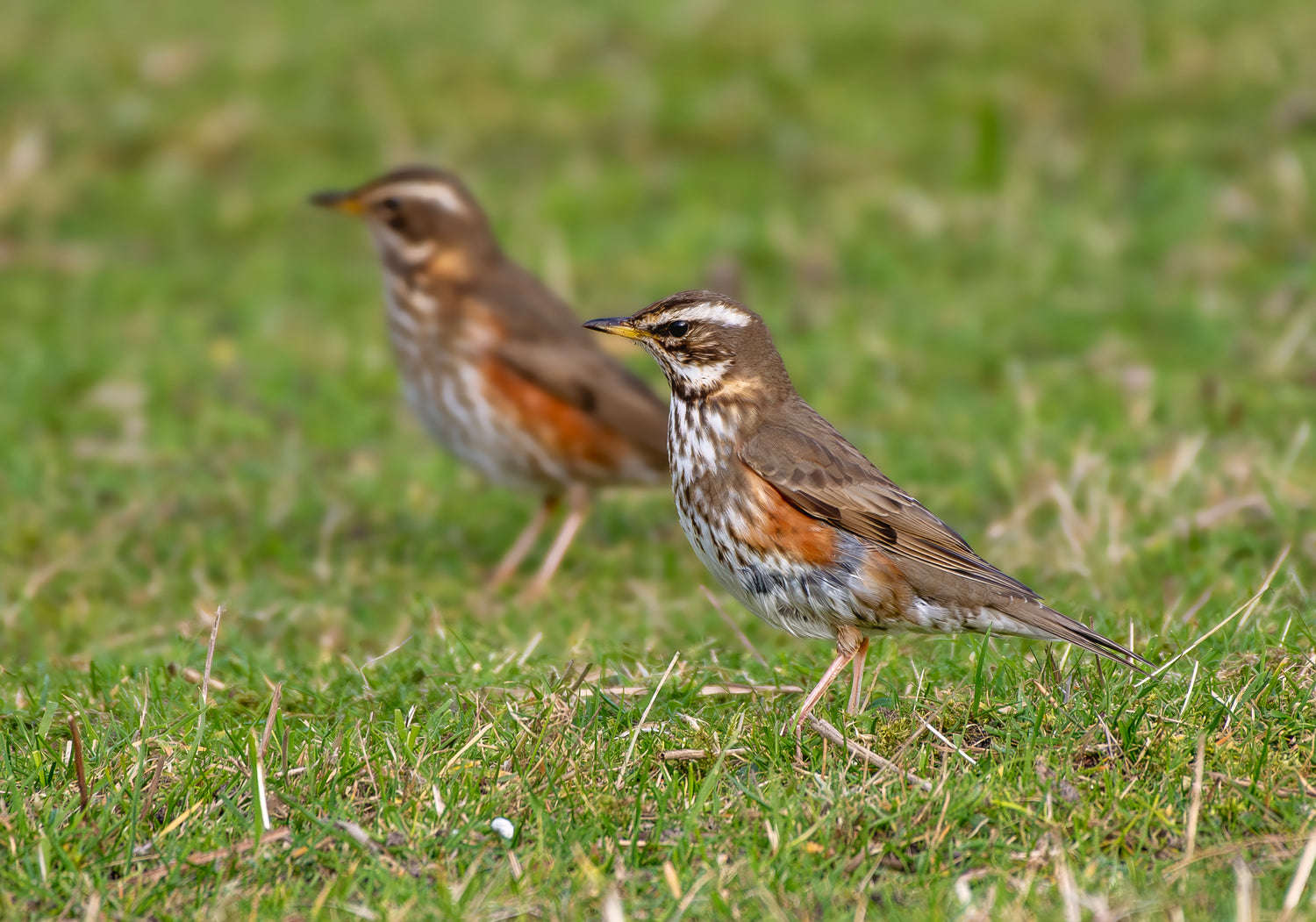 a) Redwing Turdus iliacus Cabriz, Sintra, Portugal, 06:11, 22 December 2011. A typical NFC. Background: Song Thrush T philomelos. 111222.MR.061101.01