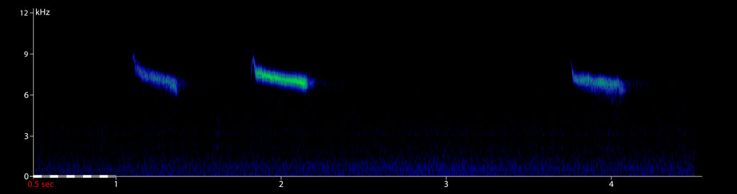 d) Redwing Turdus iliacus Sagres, Vila do Bispo, Portugal, 03:27, 16 November 2020 (GM). Two flight calls of a nocturnal migrant; second call shown. 201116.MR.032754.02
