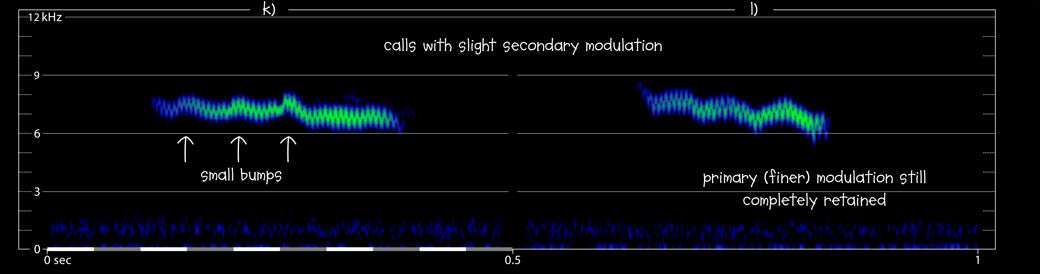 k) Redwing Turdus iliacus Poole, Dorset, England, 23:46, 29 October 2016 (Paul Morton). Several Redwing NFCs with secondary modulations. Second call shown. 161029.PM.234632.02