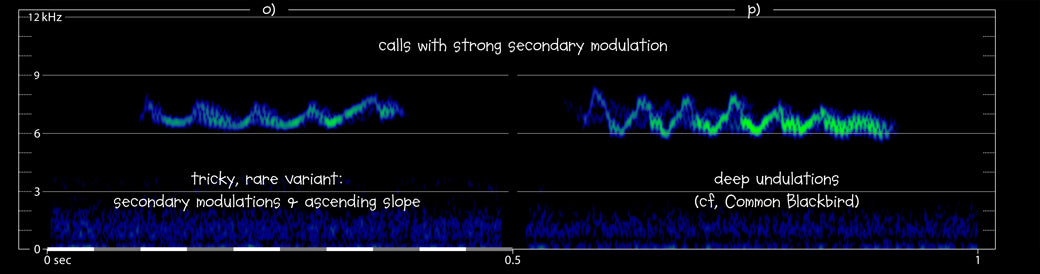 o) Redwing Turdus iliacus Poole, Dorset, England, 01:58, 30 October 2016 (Paul Morton). A NFC with secondary modulations and slightly ascending slope. 161030.PM.015849.02