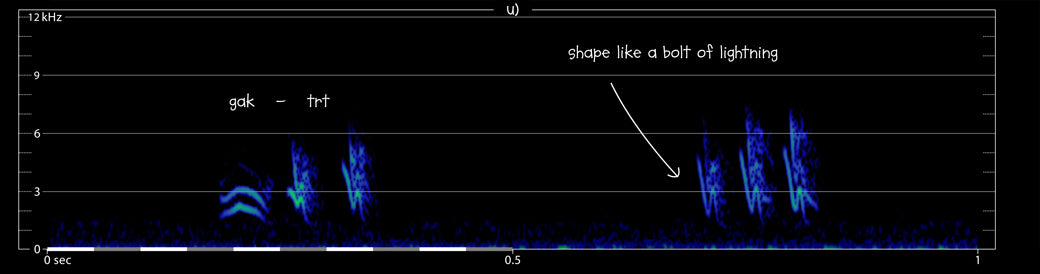 u) Redwing Turdus iliacus Arne, Dorset, England, 00:24, 25 October 2016. A call combining gak with the rattling trt-trt alarm. 161025.MR.002400.02