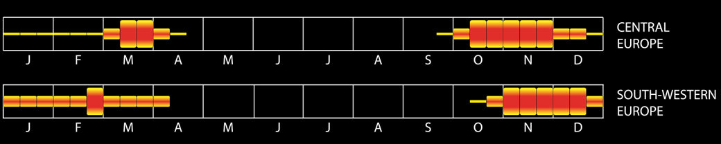 e) Redwing Turdus iliacus Porto Covo, Sines, Portugal, 04:01, 3 November 2010. One nocturnal migrant with extremely hoarse voice. Background: Song Thrush T philomelos. 101103.MR.040156.01
