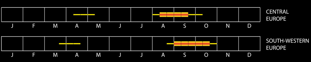 l) Tree Pipit Anthus trivialis Sagres, Vila do Bispo, Portugal, 04:56, 10 September 2018 (GM). Two-note call of a nocturnal migrant. Background: European Pied Flycatcher Ficedula hypoleuca. 180910.MR.045640.12