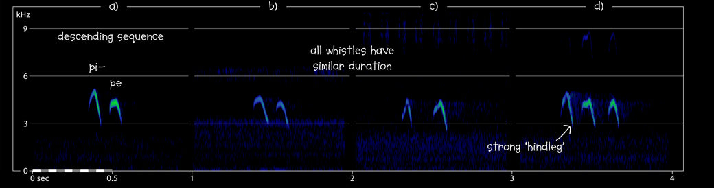 a) Wood Sandpiper Tringa glareola Potsdam, Brandenburg, Germany, 02:17, 30 July 2019 (Steve Klasan). Two-note and three-note versions of pi-pe call from a nocturnal migrant flying over an urban area; sonagram shows first call.