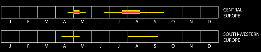 c) Wood Sandpiper Tringa glareola Potsdam, Brandenburg, Germany, 01:05, 20 August 2016 (Lukas Pelikan). Two pi-pe calls of a nocturnal migrant over an urban area; sonagram shows first call. Background: Great Green Bush Cricket Tettigonia viridissima.